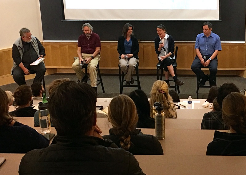 Naomi Tague took part as a faculty panel member at the “Lets Talk About Water” event last week, organized by Tague Team Lab members Ty Brandt and Kate Voss, who also gave flash talks of their research, along with lab member Chris Heckman. This campus and community wide water event, co-funded by CUASHI, ERI, and Bren, was designed to promote a better understanding of water issues in the west and share faculty and student research through four short films, a faculty panel discussion and PhD student flash talks, followed by a reception that allowed guests from the general public, students, and local environmental organizations & water practitioners to discuss water issues.