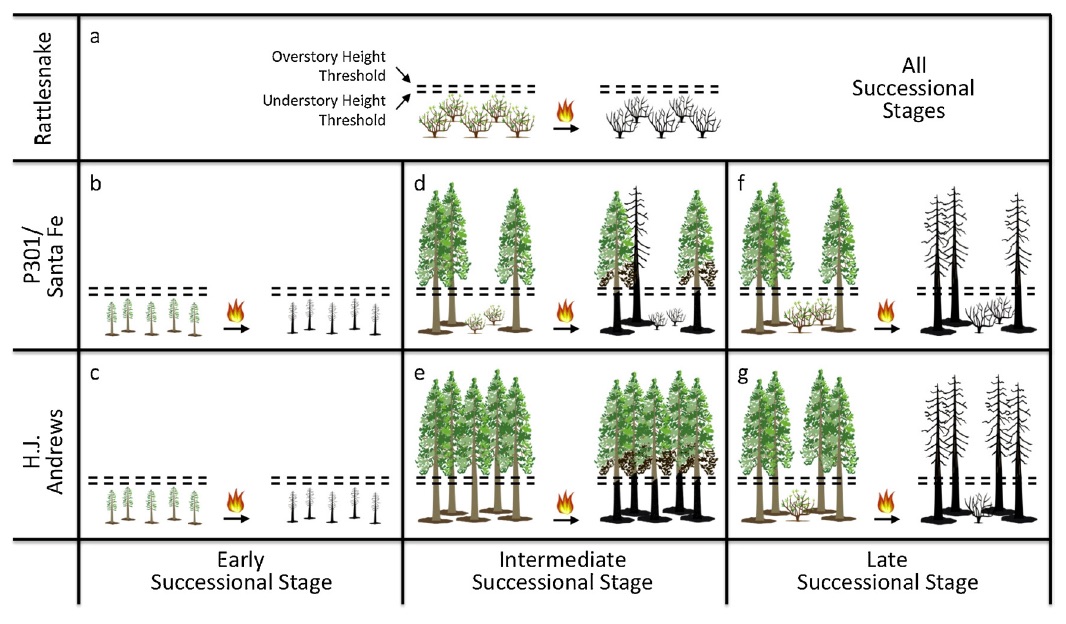 In this new publication in Ecological Modelling, the authors address the relationship between ecohydrology and wildfire and the representation of fire effects on vegetation carbon in ecohydrologic models, which requires a fully coupled modeling approach where wildfire and its effects co-evolve with ecohydrologic processes. Here they present the integration of a fire-effects model that is coupled to the distributed ecohydrologic model RHESSys and the fire-spread model WMFire.