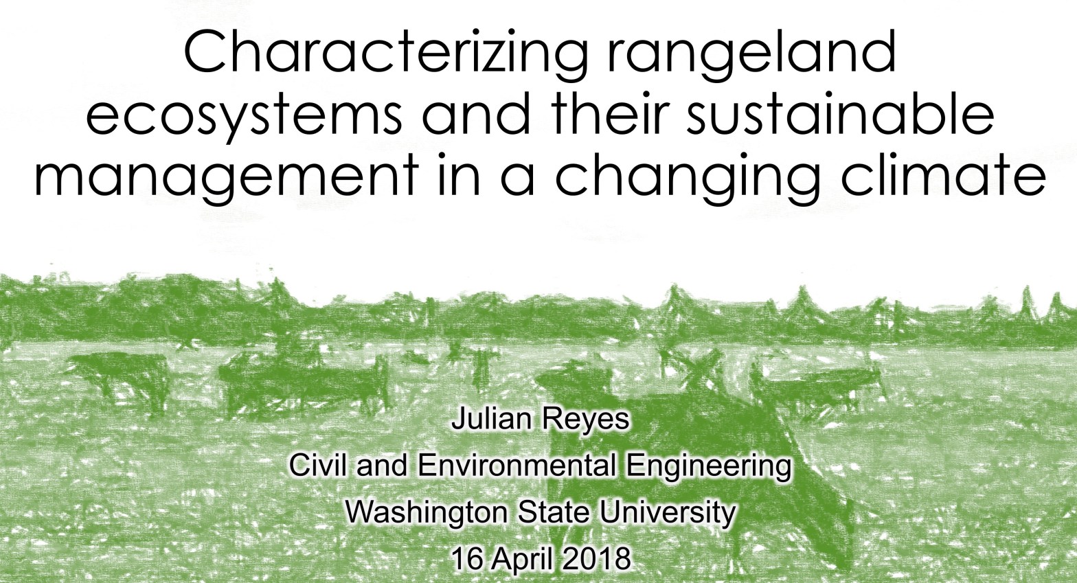 We congratulate Julian Reyes, PhD student in Civil and Environmental Engineering at Washington State University – and Tague Team Lab friend and collaborator – on successfully defending his PhD “Characterizing rangeland ecosystems and their sustainable management in a changing climate”. Dr. Reyes developed a new approach to modeling carbon allocation and his research led toContinue reading “PhD student Julian Reyes successful defense – Congratulations Dr. Reyes!”