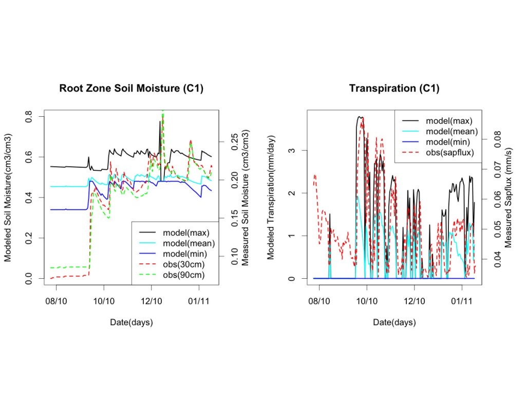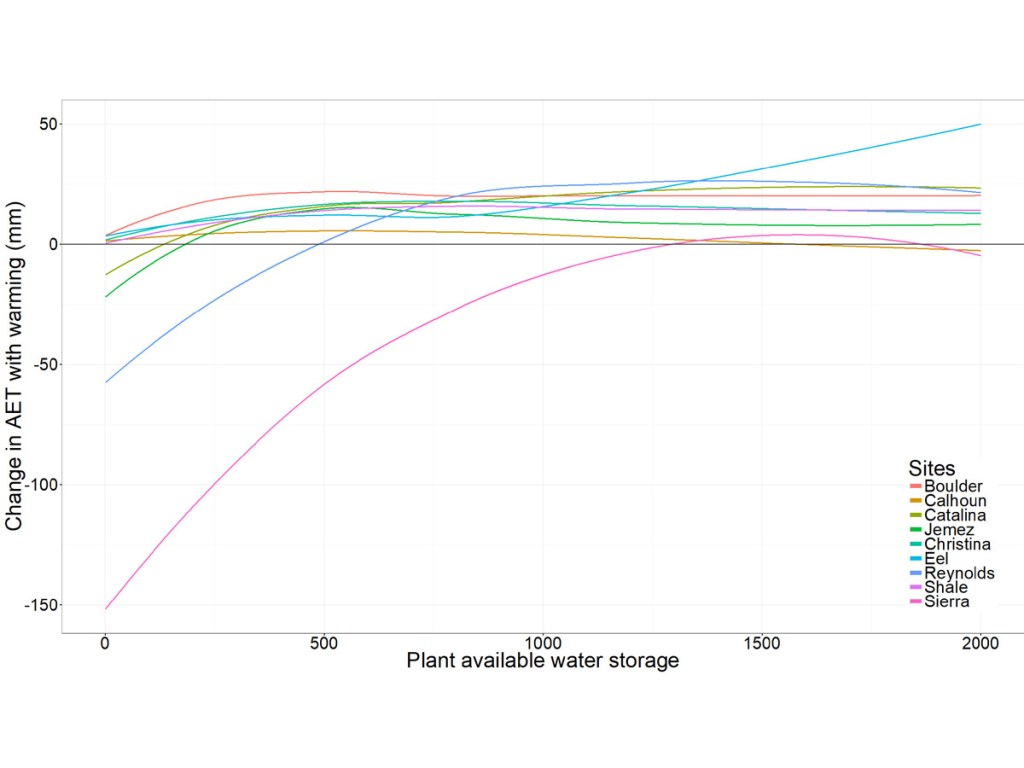 - Tague, C.L., Moritz, M.A. (2019) Plant Accessible Water Storage Capacity and Tree-Scale Root Interactions Determine How Forest Density Reductions Alter Forest Water Use and Productivity, Frontiers in Forests and Global Change 2:36. doi:10.3389/ffgc.2019.00036.