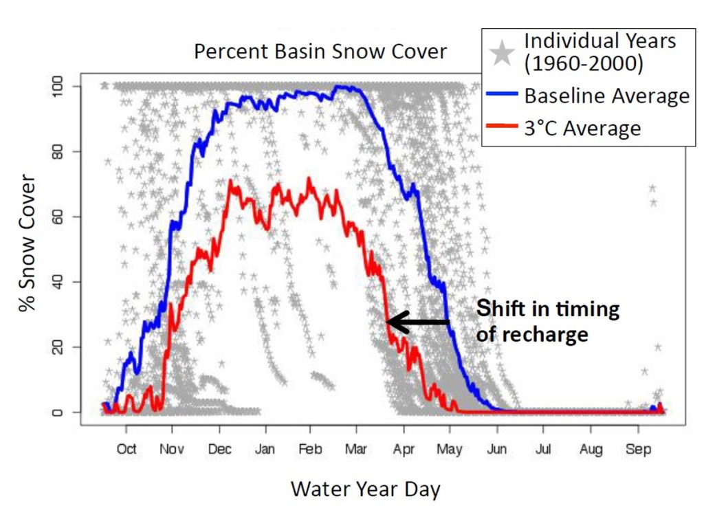 Water availability is important for ecosystem function and for human communities. In the short term, changes in supply modify productivity and sensitivity to disturbances such as fire and disease. Longer term, ecosystem composition and biodiversity are also affected. Shifts in ecosystems influence surface and groundwater resources.