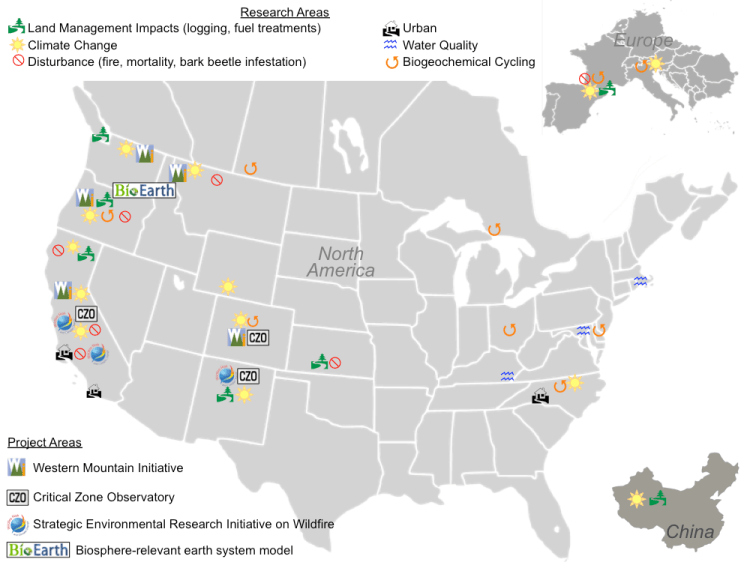 Our lab group specializes in eco-informatics related to understanding the terrestrial environment and how it processes water, energy, nutrients, and carbon. We specialize in the design and application of dynamic simulation models and linking these models with multiple data sources (from remote sensing to on the ground measurements).